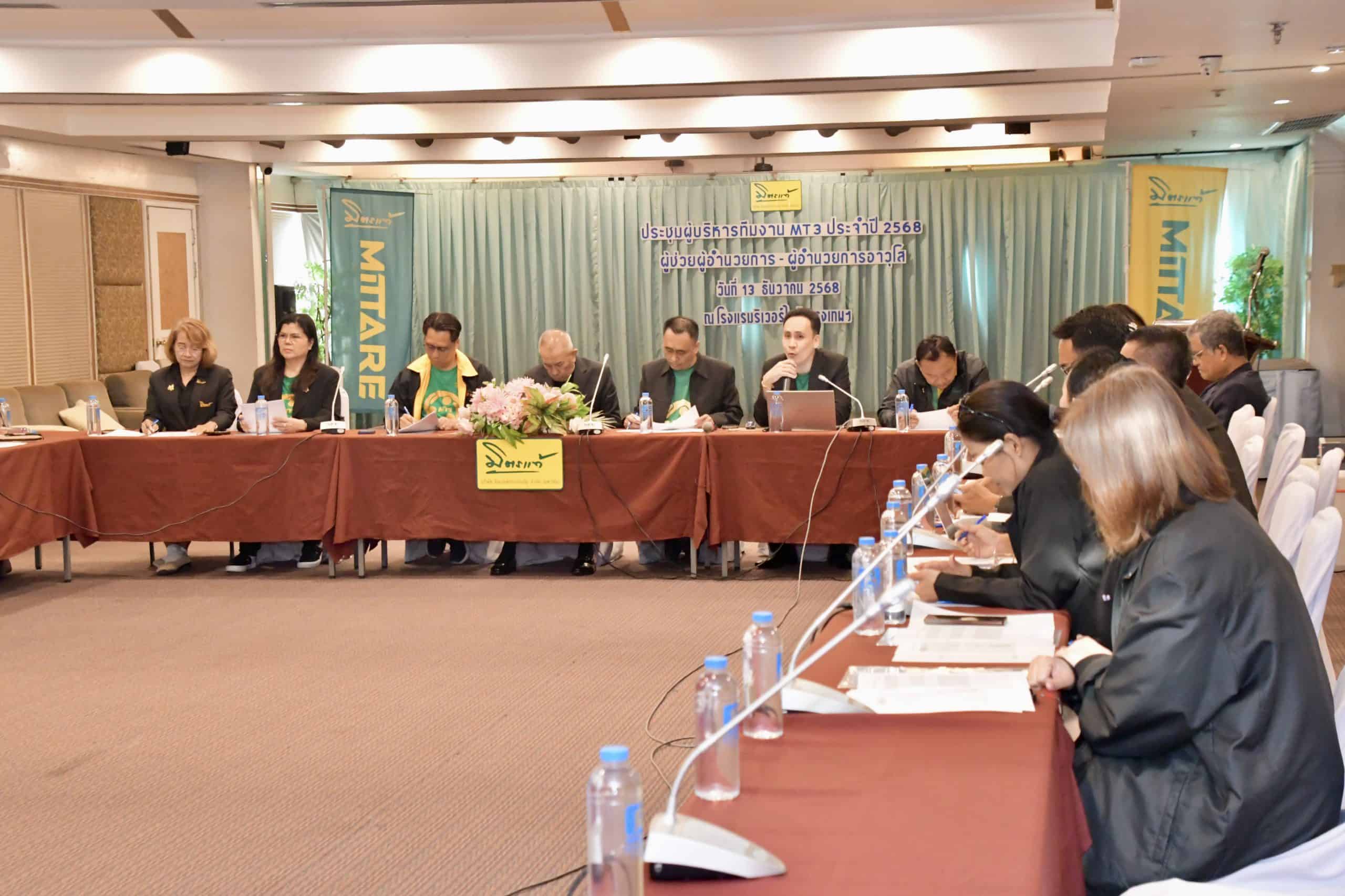 บริษัท มิตรแท้ประกันภัย จำกัด (มหาชน) โดยทีม MT3 ภายใต้การดำเนินงานของทีมงานรวมมิตรแท้ (MT3) จัดการประชุมผู้บริหารฝ่ายขายทีม MT3 ประจำปี 2568 สำหรับผู้บริหารระดับผู้ช่วยผู้อำนวยการถึงผู้อำนวยการอาวุโส เพื่อร่วมกำหนดทิศทางการดำเนินงานและวางแผนขับเคลื่อนเป้าหมายการเติบโตในปี 2569