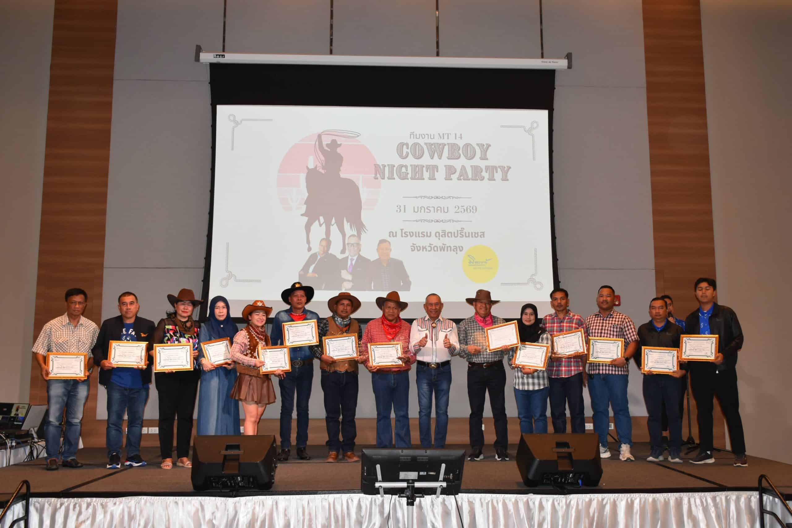 และในช่วงค่ำได้จัดงานเลี้ยงสังสรรค์ต้อนรับปีใหม่ 2569 พร้อมพิธีมอบรางวัลคุณวุฒิแก่ตัวแทนประกันภัยทีม MT14 เพื่อเฉลิมฉลองความสำเร็จตลอดปีที่ผ่านมา และเชิดชูความมุ่งมั่นของตัวแทนประกันภัยที่ร่วมกันขับเคลื่อนการเติบโตขององค์กร ณ โรงแรมดุสิตปริ๊นเซส จังหวัดพัทลุง เมื่อวันเสาร์ที่ 31 มกราคม 2569