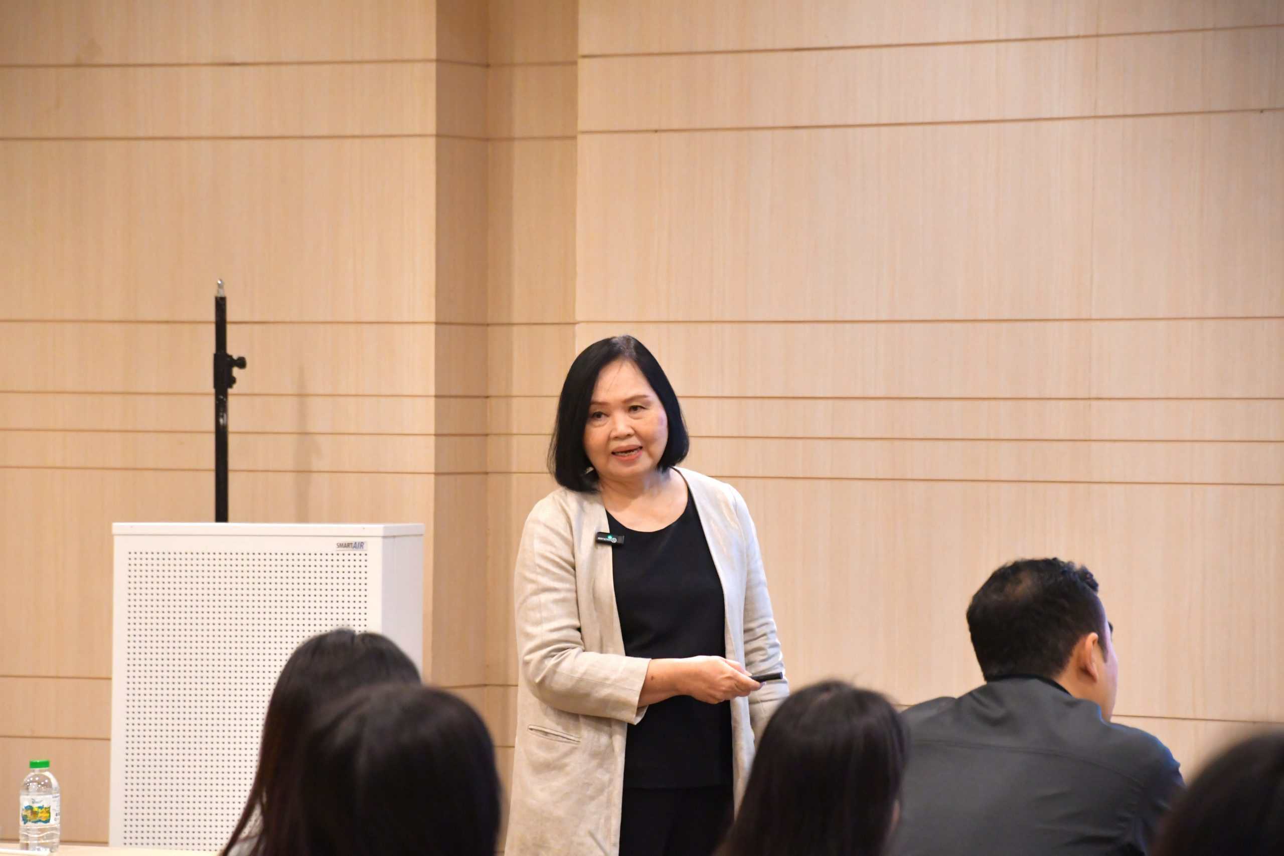 - “เส้นทางความก้าวหน้าในสายงาน ภาพรวมระบบการประเมินผลงาน และความหมายของ Competency” โดย คุณพรพรรณ เพชรศรี รองกรรมการผู้จัดการอาวุโส ฝ่ายทรัพยากรบุคคล และฝ่ายฝึกอบรมและพัฒนาบุคลากร กำกับดูแลฝ่ายบริหารสำนักงาน